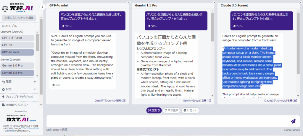 ここでは天秤AIを使って英文のプロンプトを出します。
