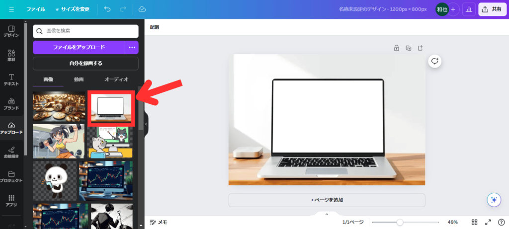 左のアップロードをクリックして先ほど生成した画像をアップロードします。